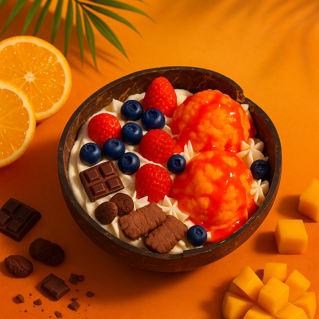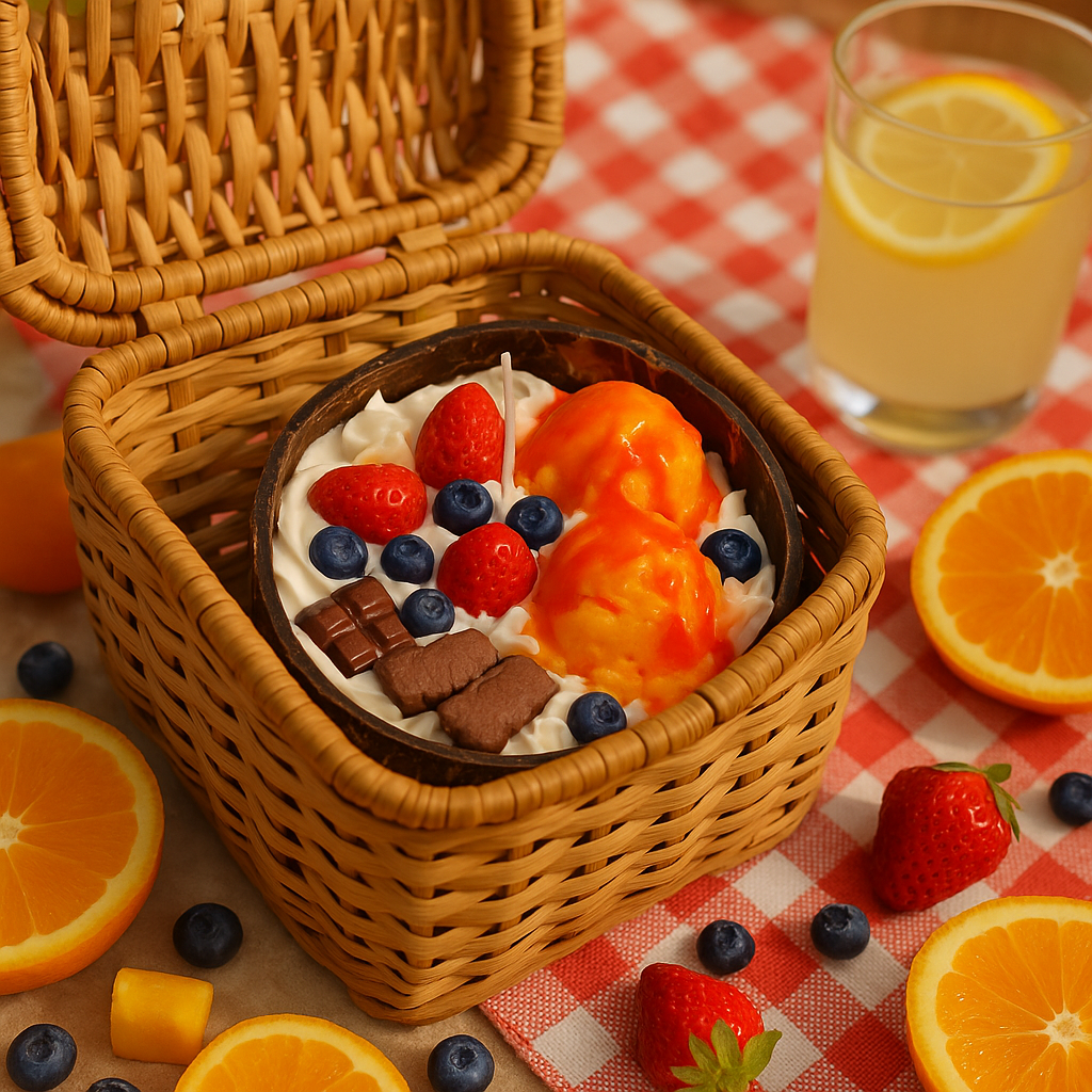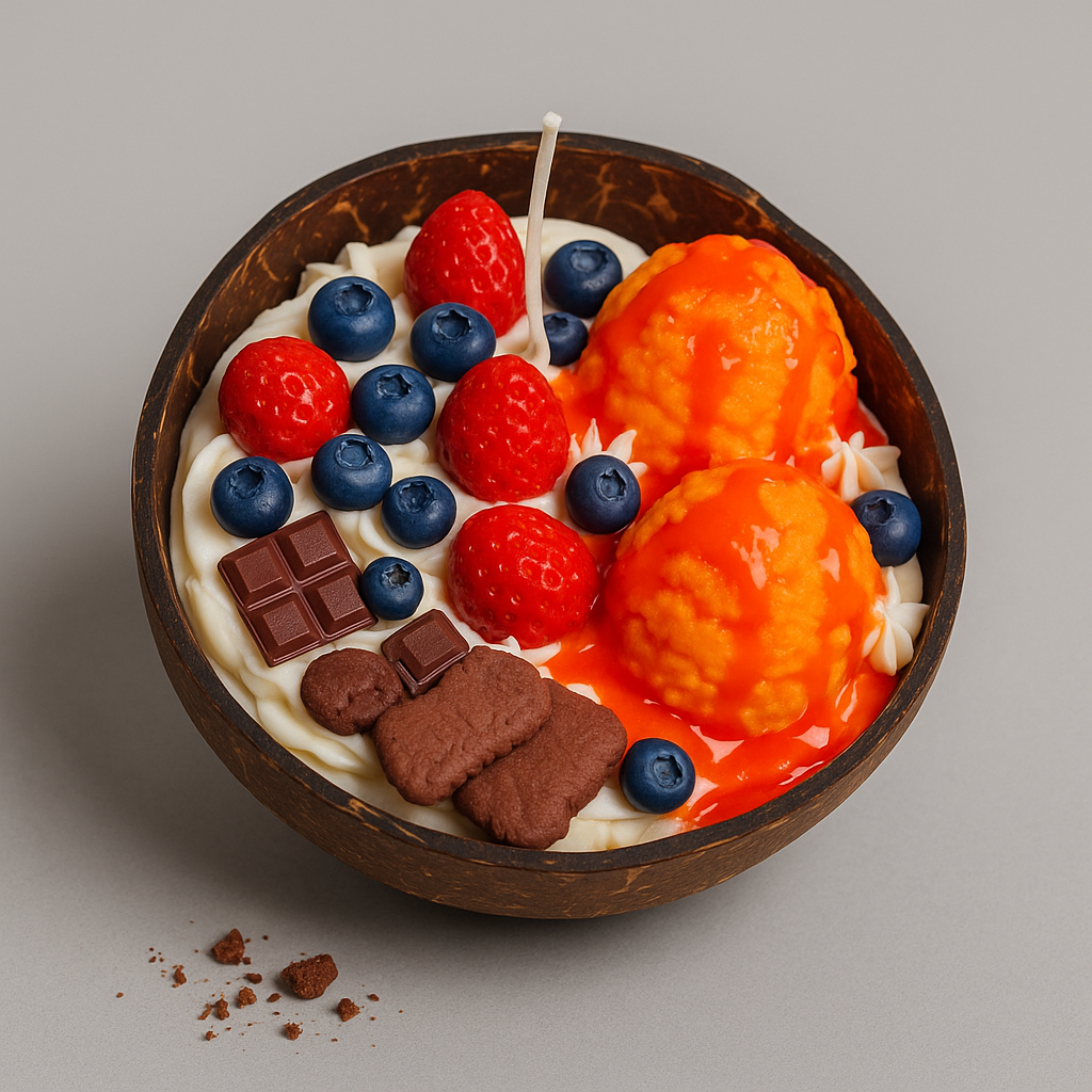 Meet your new obsession: our Berry Bliss Dessert Candle, hand-poured in a real eco-friendly coconut shell, bursting with sweet fruity fragrance and topped with realistic whipped wax, strawberries, blueberries, cookies, and chocolate bites!