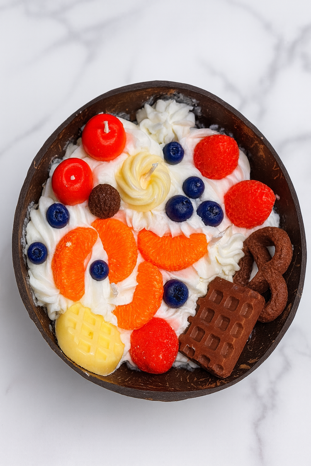 Introducing our Fruit Punch Coconut Shell Candle β handcrafted to perfection and designed to fool your eyes while delighting your nose!